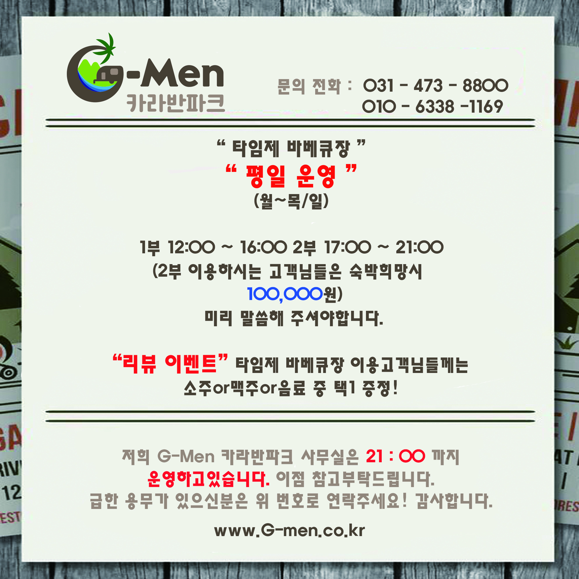 G-Men카라반파크 전화상담 시간 : 10 : 00 ~ 21 : 00